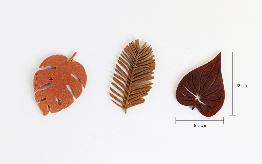 長約12.5~14.3 cm、寬約 7.8~9.8cm(三入一組,每片葉子大小都不同喔)