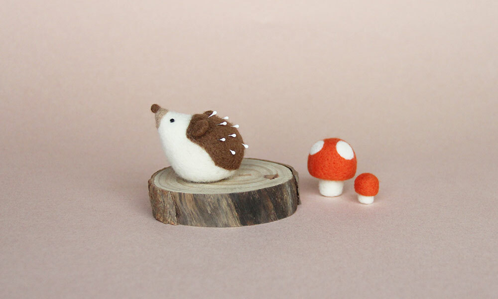 外形像鋼刷一般的刺蝟,其實多數性情膽小,身上的刺只是防衞作用。遇上危險的時候,敏感的小刺蝟便會將身體蜷曲成球狀來保護自己。隨著棲地的破壞、車輛的路殺及農藥的威脅等,部分品種的刺蝟已面臨絕種危機。想要使用羊毛氈完成這隻冒險的小精靈嗎?享受將刺蝟捧在手心上的感覺!