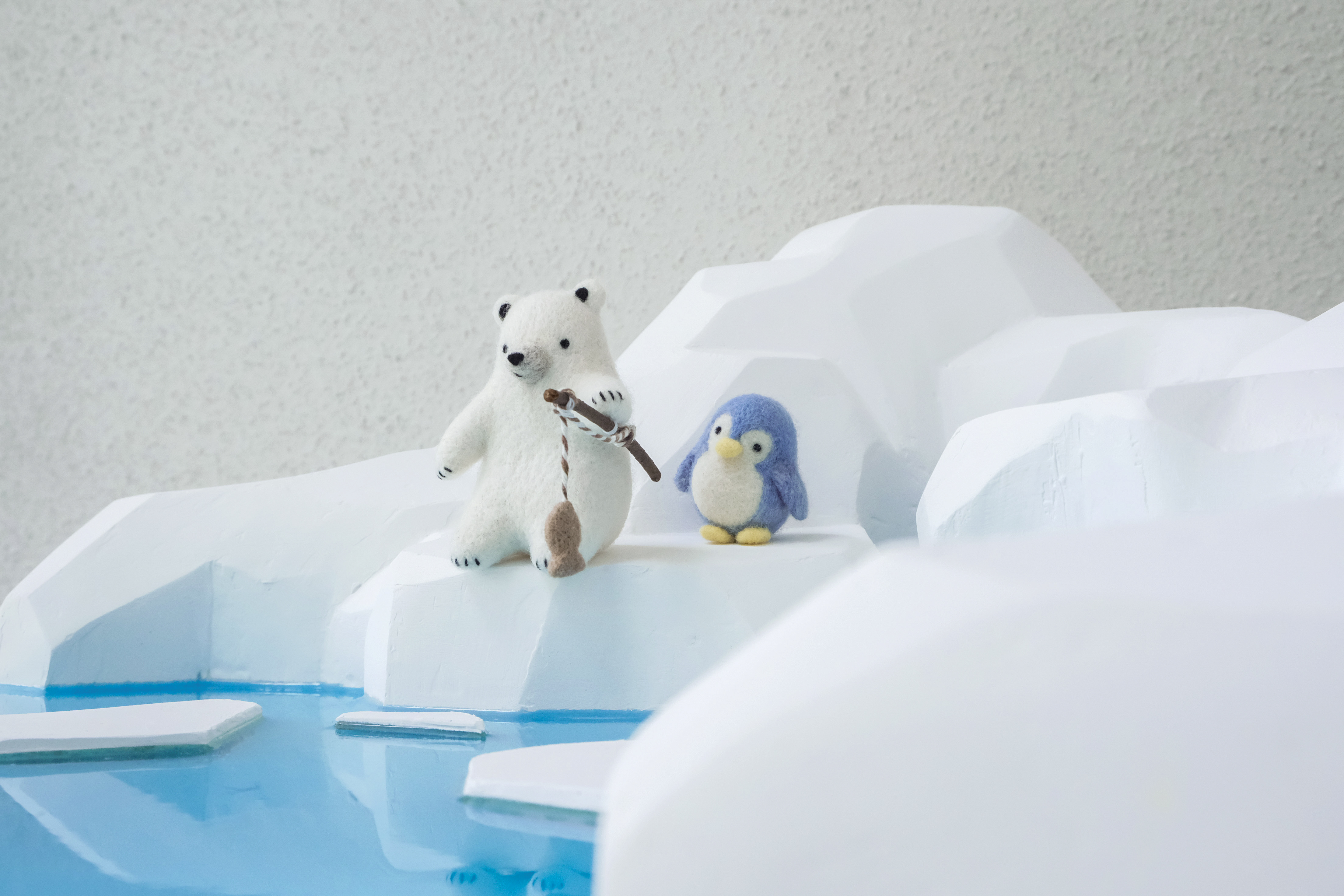 北極熊,在不同的語言中又稱為白熊或冰熊,他的存在可能可以追溯六十多萬年前(也有不同的科學家認為是十五、二十、四十、甚至上百萬年前)。健康的北極熊會擁有極厚的脂肪及毛髮,白色的外表在雪白的雪地上是最好的保護色,同時也是游泳健將哦 ! 雖然因全球暖化導致海冰減少、人類捕殺,以及棲息地被破壞等影響,北極熊的數量在幾十年間嚴重減少,瀕臨絕種。透過羊毛氈完成的小北極熊,相信能吸引更多人對他的愛護之心!