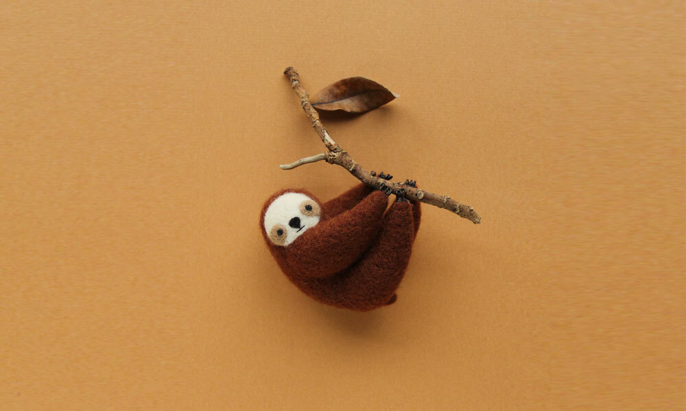 大多時間都待在樹上的樹懶,移動速度非常、非常緩慢,可能要花上一整天的時間,才能從一棵樹移動到另外一棵樹上。在保護色的掩護之下,雖然樹懶的生存並未受到天敵的嚴重威脅,但人類破壞森林環境,仍為樹懶帶來不小的危機。想用羊毛氈嘗試戳出電影《動物方城市》大受歡迎的樹懶嗎?